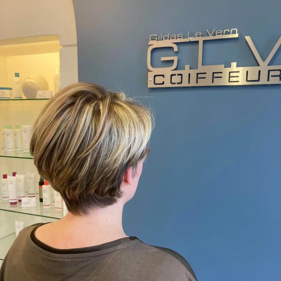 Votre salon de coiffure GLV Coiffeur à Quimper, vous présente des photos de l'extérieur et de l'intérieur du salon, de son équipe de coiffeurs et de coiffeuses, ainsi que des exemples de coupes de cheveux réalisées sur sa clientèle.